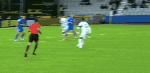 第36分钟,朱辰杰铲断没有碰到皮球,杜甘日奇获得准单刀的机会,薛庆浩挡了一下,皮球击中边网。